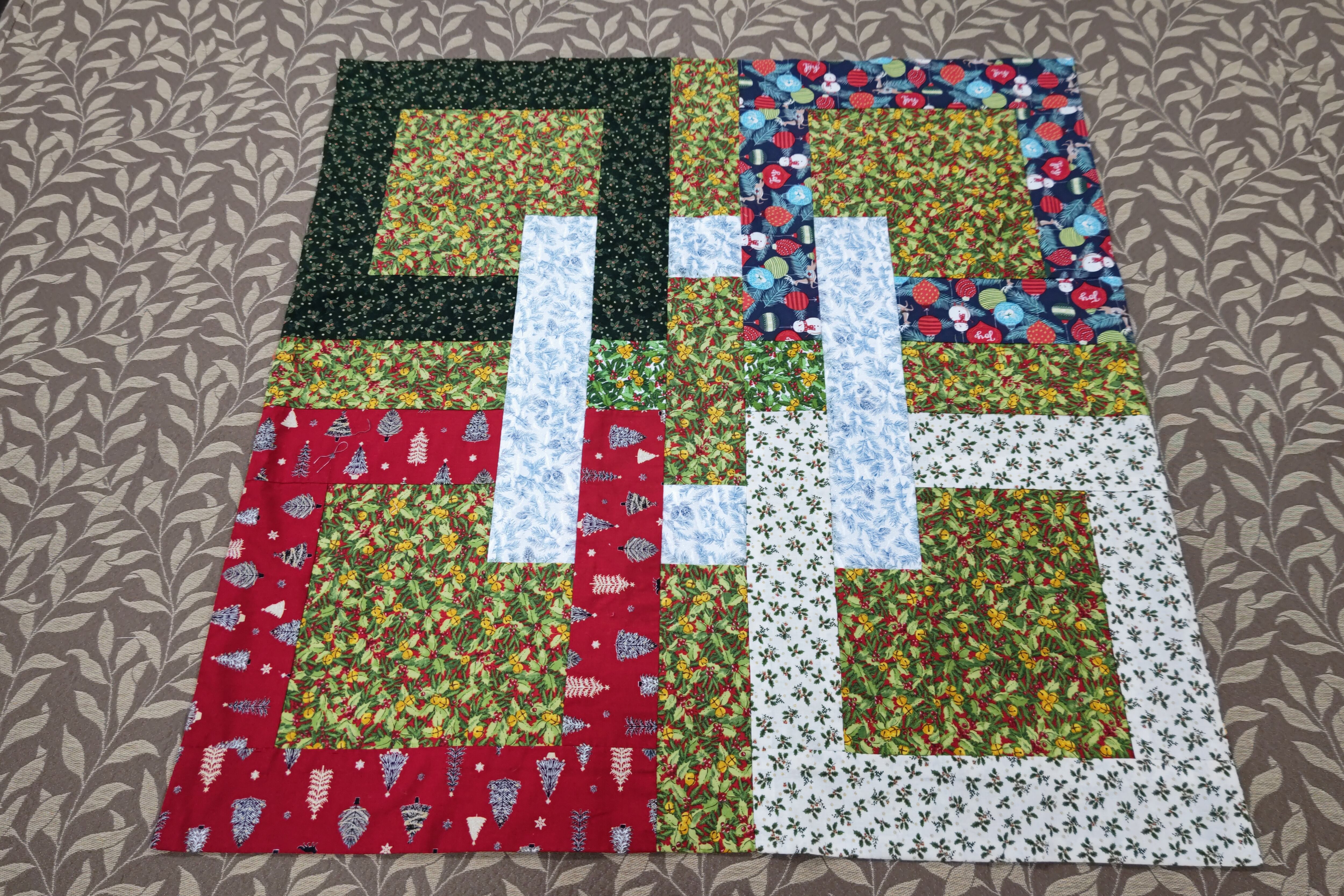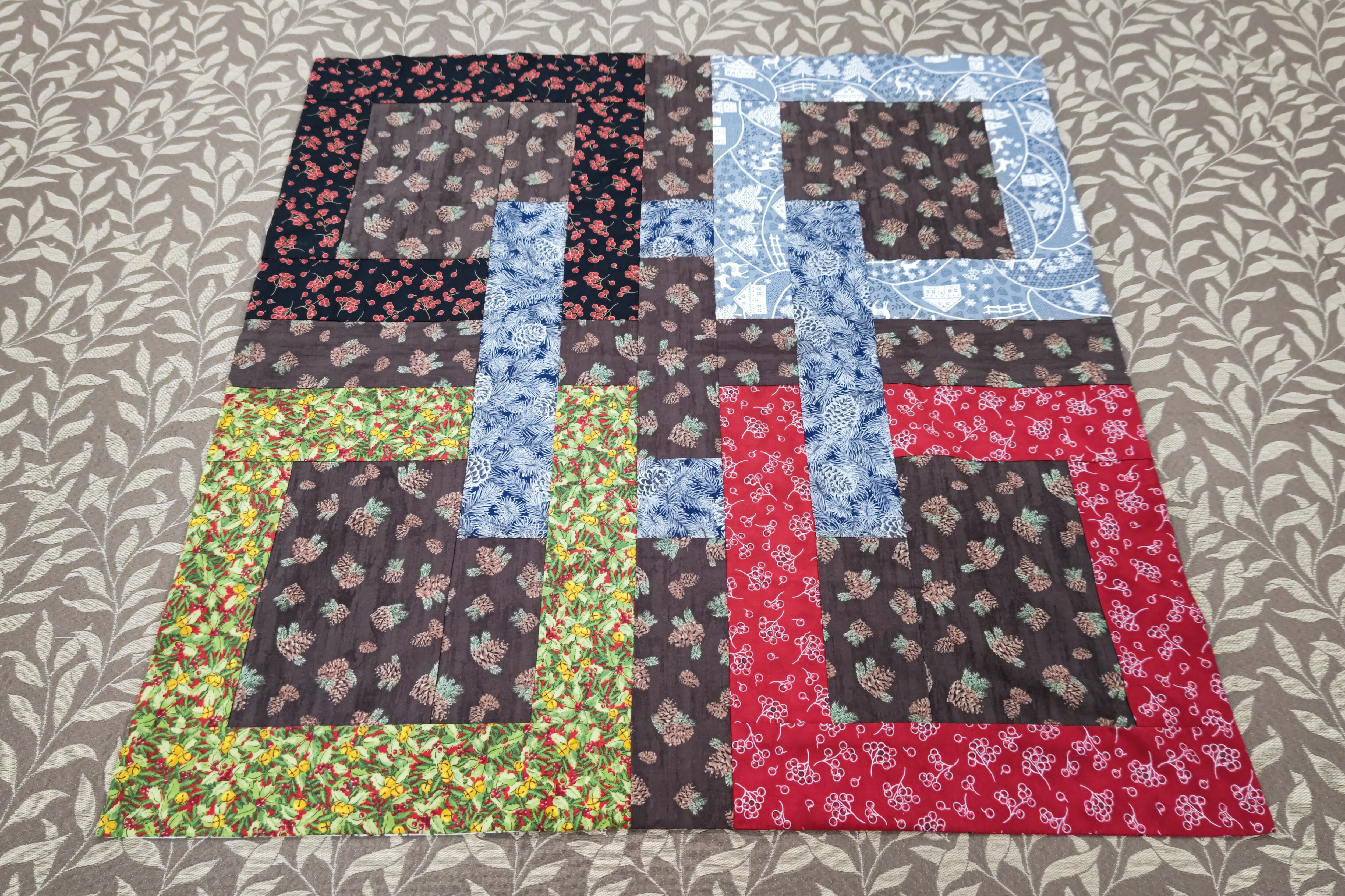 組み合わせの面白さが感じられるクリスマスキルトです。