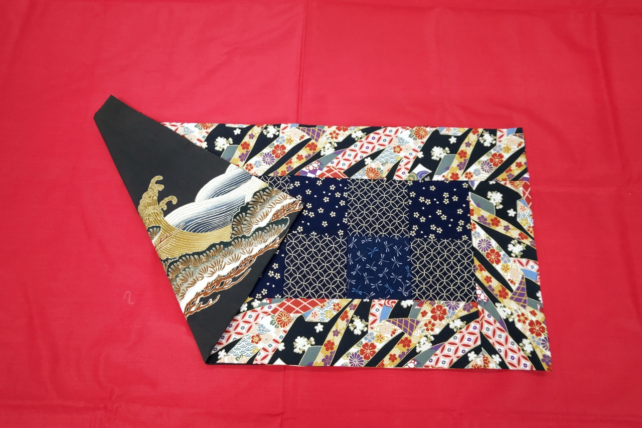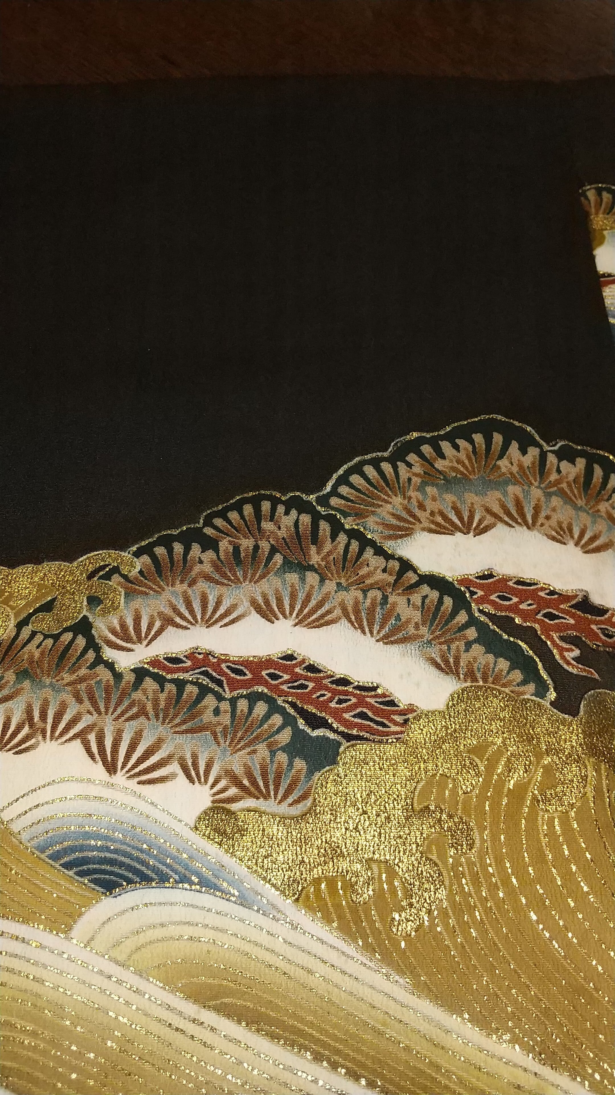 B面は、お正月に相応しく、松と荒波金糸でデザインされた、正絹の留袖の裾の部分を使用しています。
