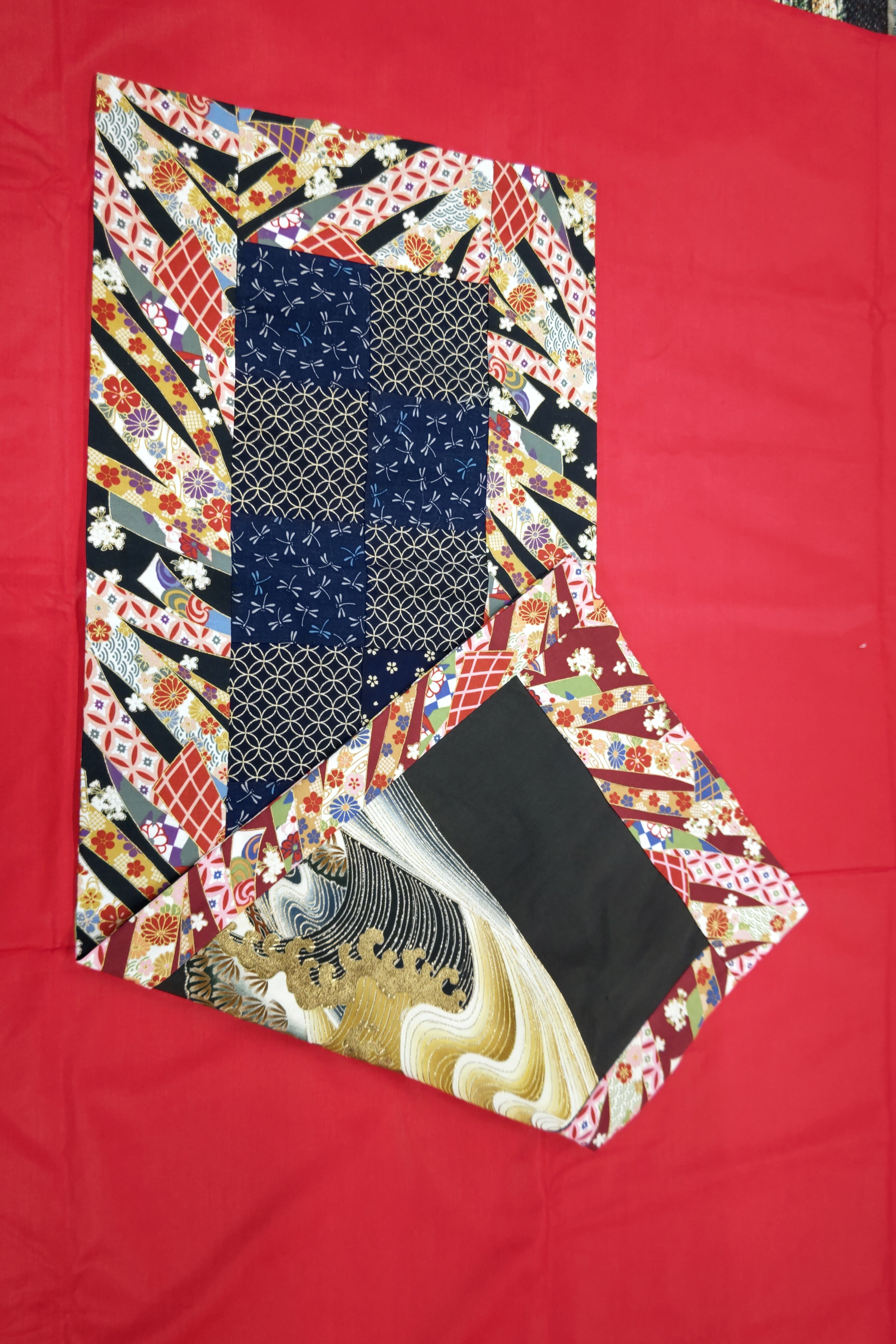A面は、4種類の日本製コットンを組み合わせたデザインです。横長のものとして使用するならば、テーブルセンターや敷台が相応しいかと思われます。