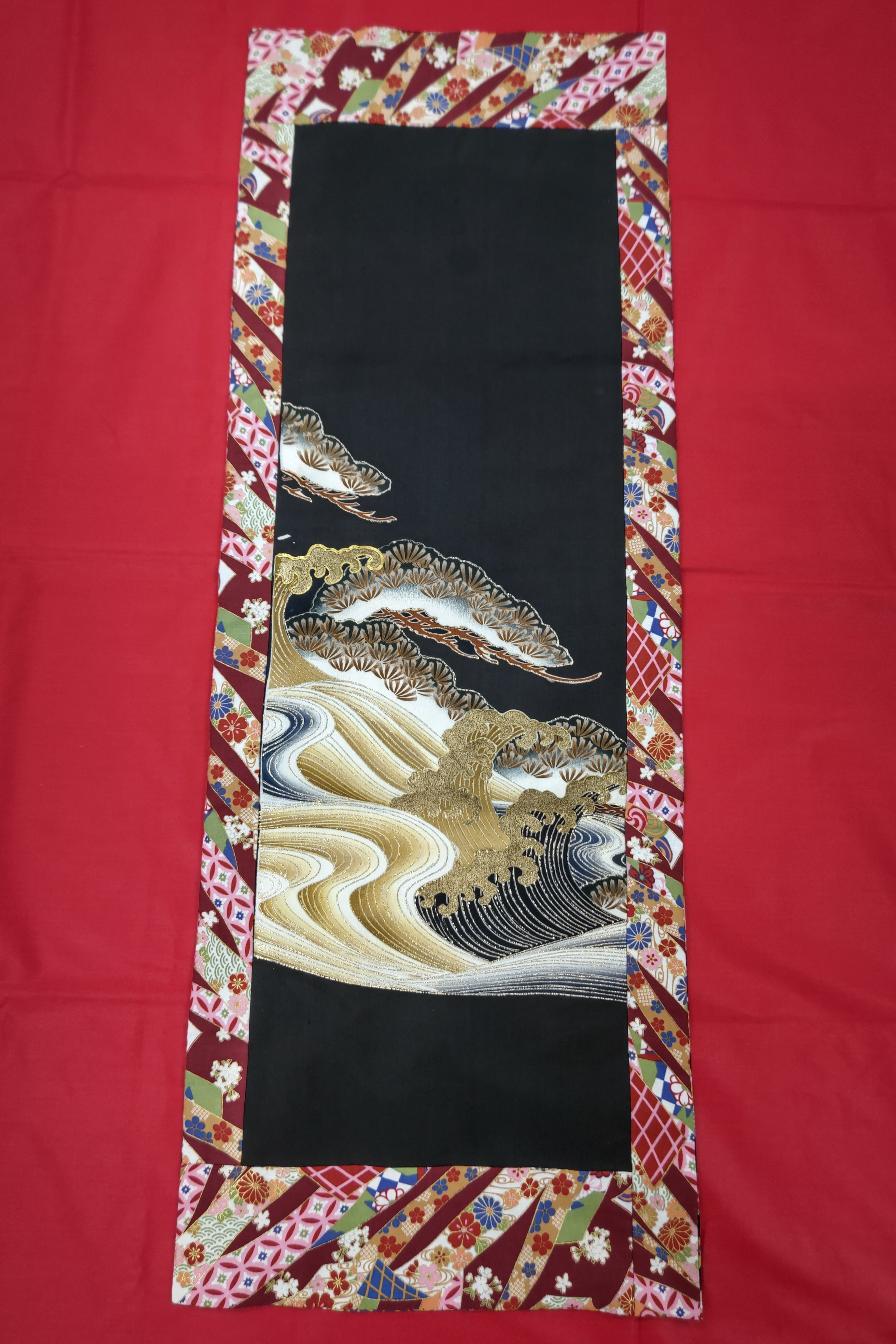 B面は、一面、正絹の留袖の裾模様を配置した構図となっています。縦長のものとして使用するならば、タペストリーが相応しいかと思われます。